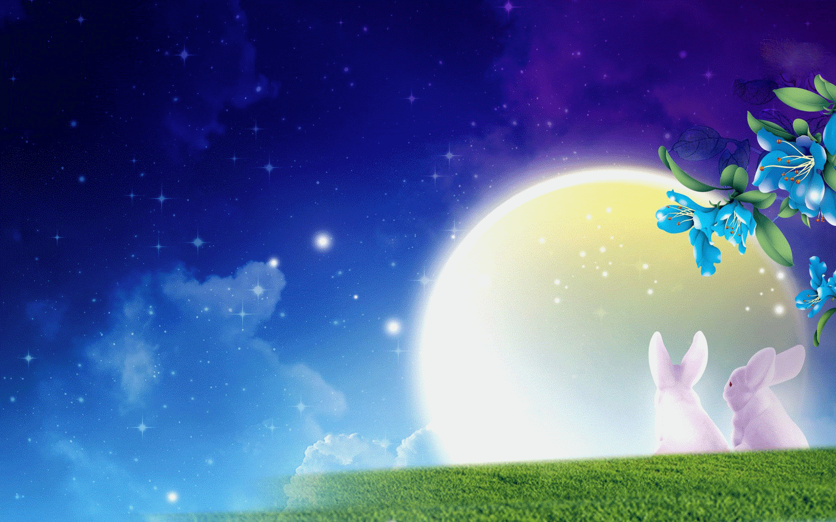 2015年中秋节创意设计月圆之夜兔子动态图片壁纸