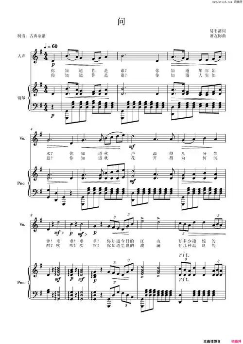问,萧友梅【声乐伴奏谱】简谱 - 曲谱歌词网