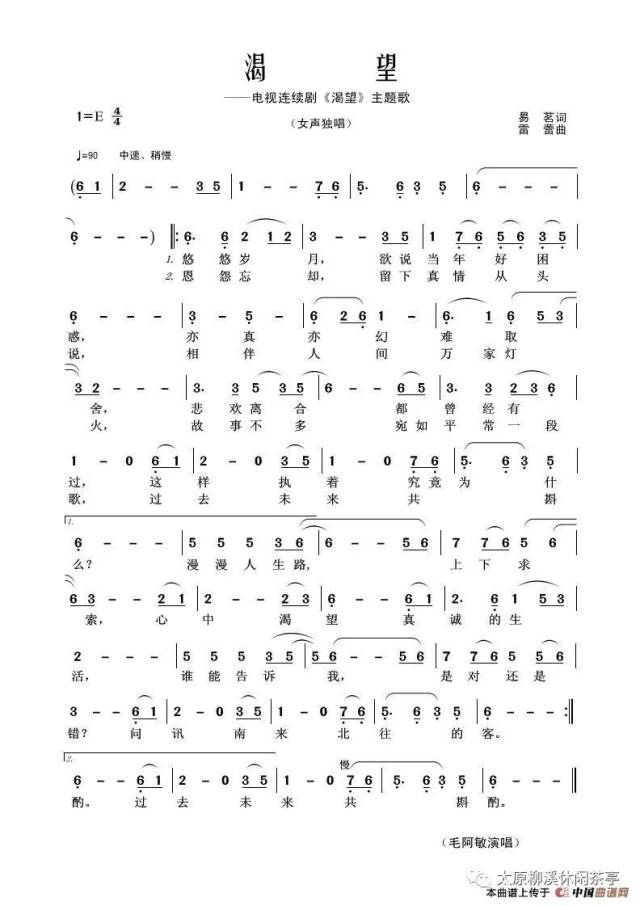 《渴望(高清版)》易茗作词 雷蕾作曲 ,原创歌曲简谱,通俗歌曲,国语