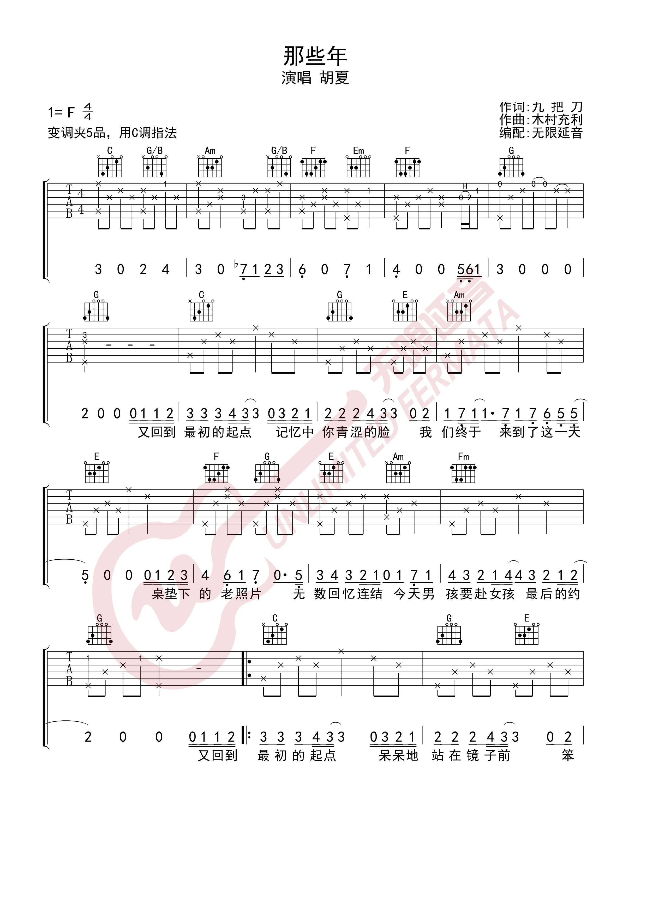 那些年吉他谱_胡夏_f调指弹吉他谱 - 吉他世界