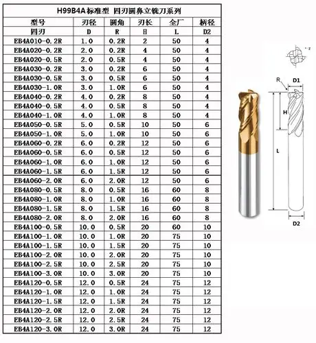 钨钢铣刀 台湾进口超高硬度钨钢圆鼻刀 亿逹yida60°金色涂层钨钢圆鼻