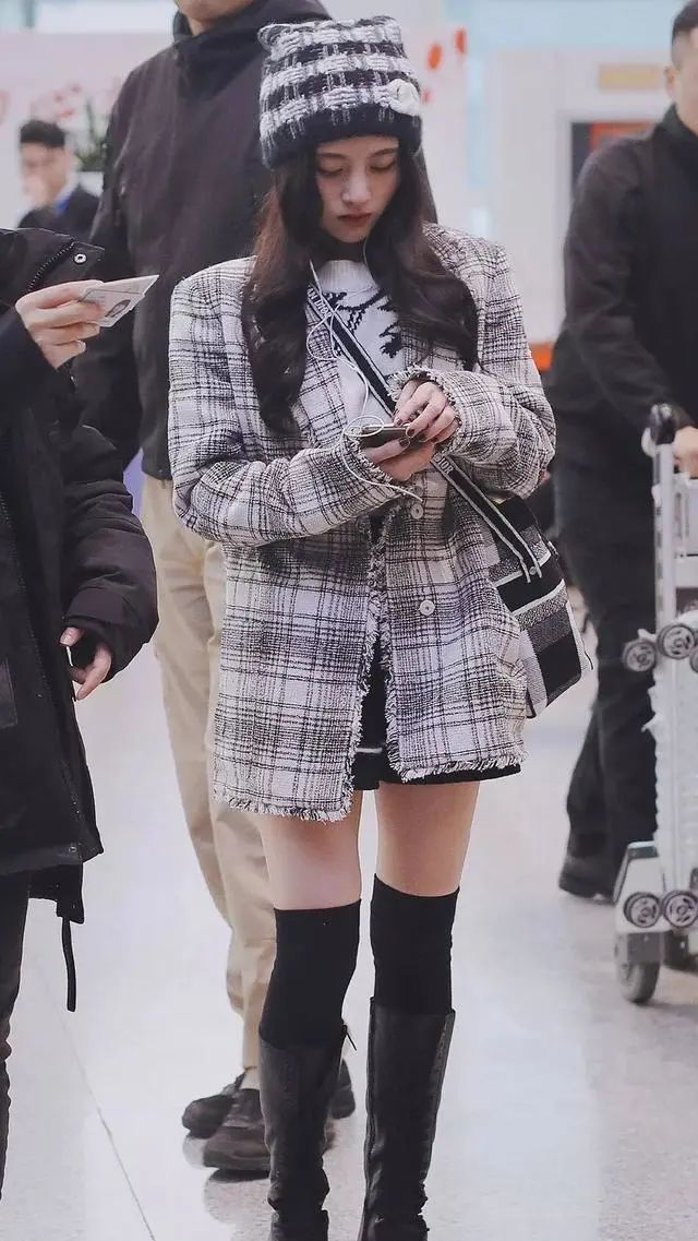 鞠婧祎小香风套装配马丁靴看到她双腿的那刻确定身高159