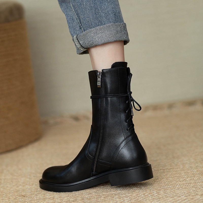 英伦风中筒靴子单靴子百搭短靴黑色2022真皮靴女马丁靴
