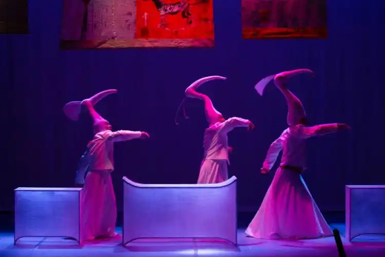舞台设计四个表演区,前后左右八个上场通道,舞台各工种操作区,演员