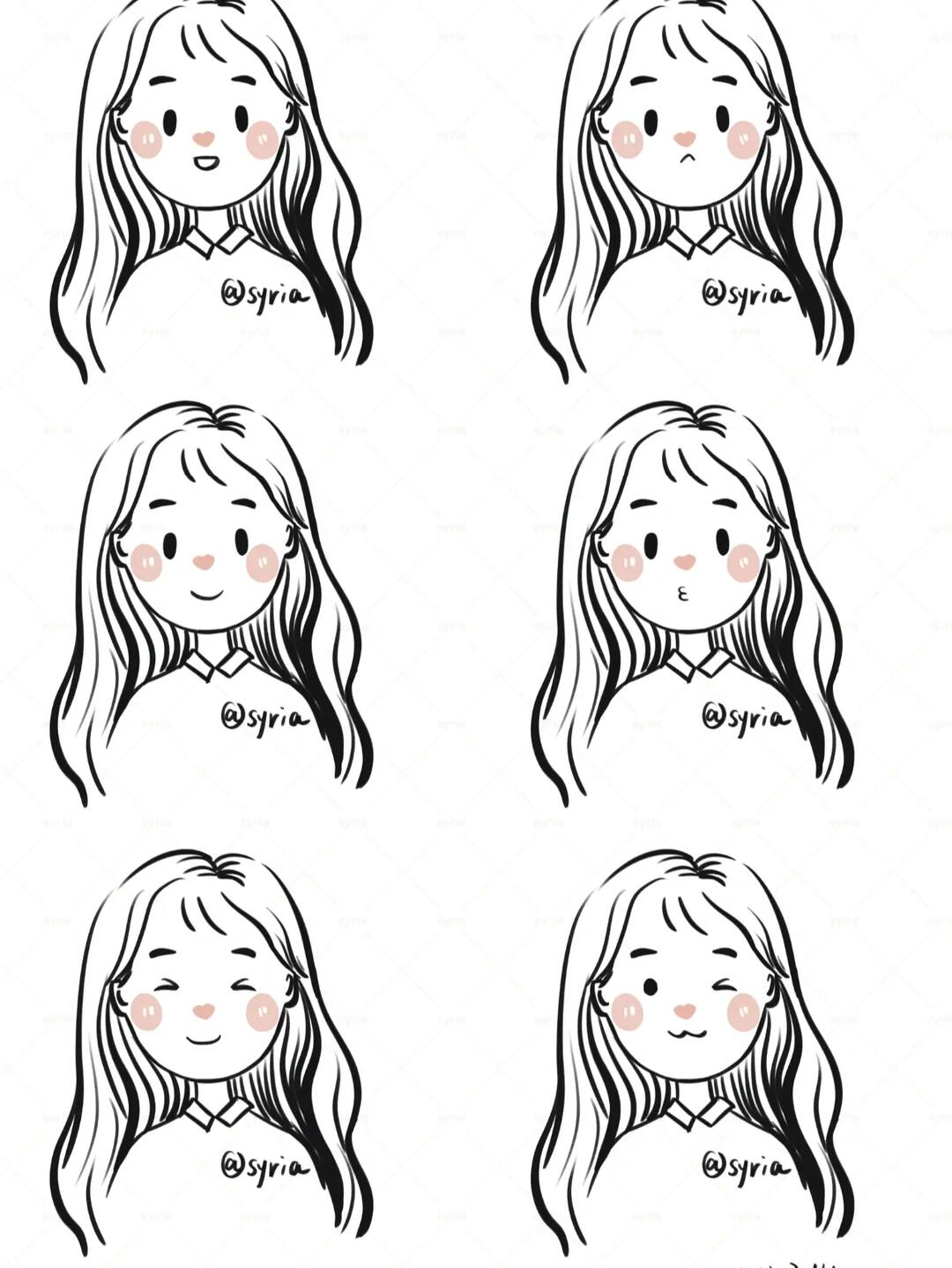 线稿卷发妹妹
