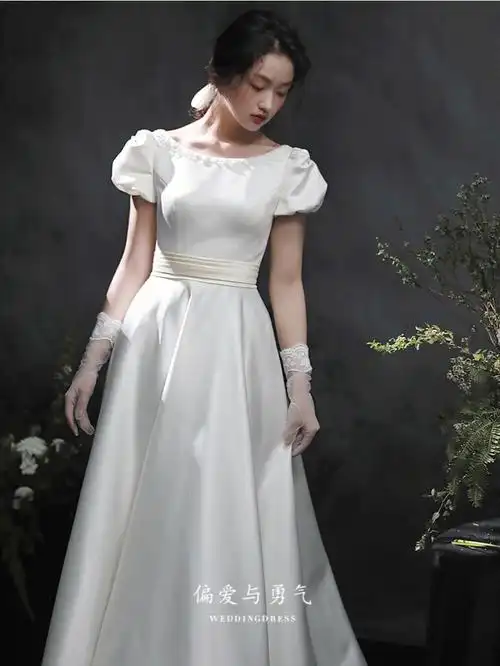 小清新味道的复古轻婚纱前短后长设计