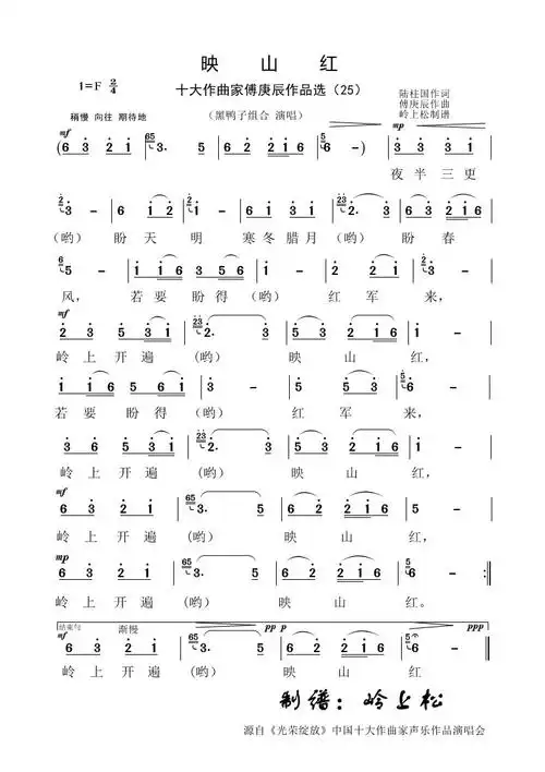 映山红(1974年影片《闪闪的红星》插曲)简谱-通俗曲谱-爱曲谱网