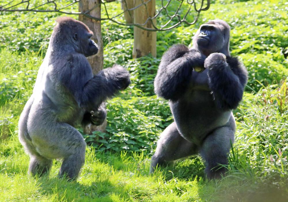 英动物园两猩猩为马铃薯捶胸"互撕"