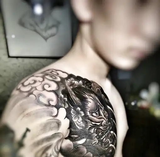 超级霸气的黑白半甲般若纹身图案