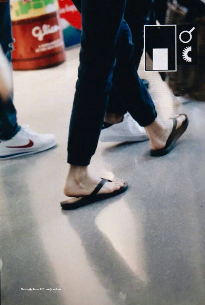 那个朋友有吴世勋穿着耐克拖鞋的照片!耐克拖鞋的!