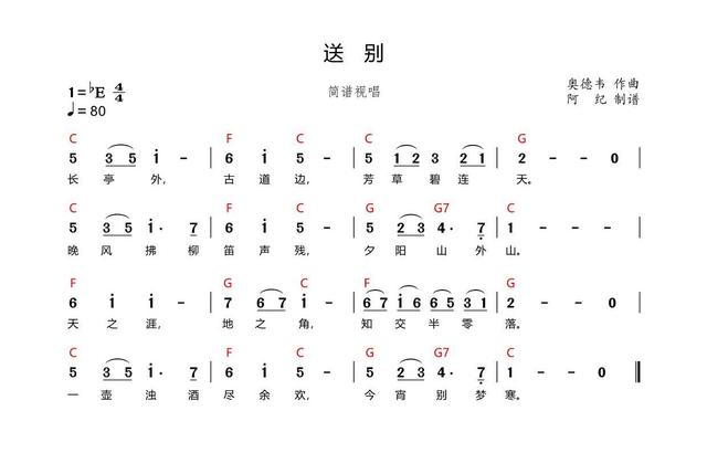 送别[合唱曲谱] 曲谱 简谱 歌谱 琴谱 总谱 音乐教程