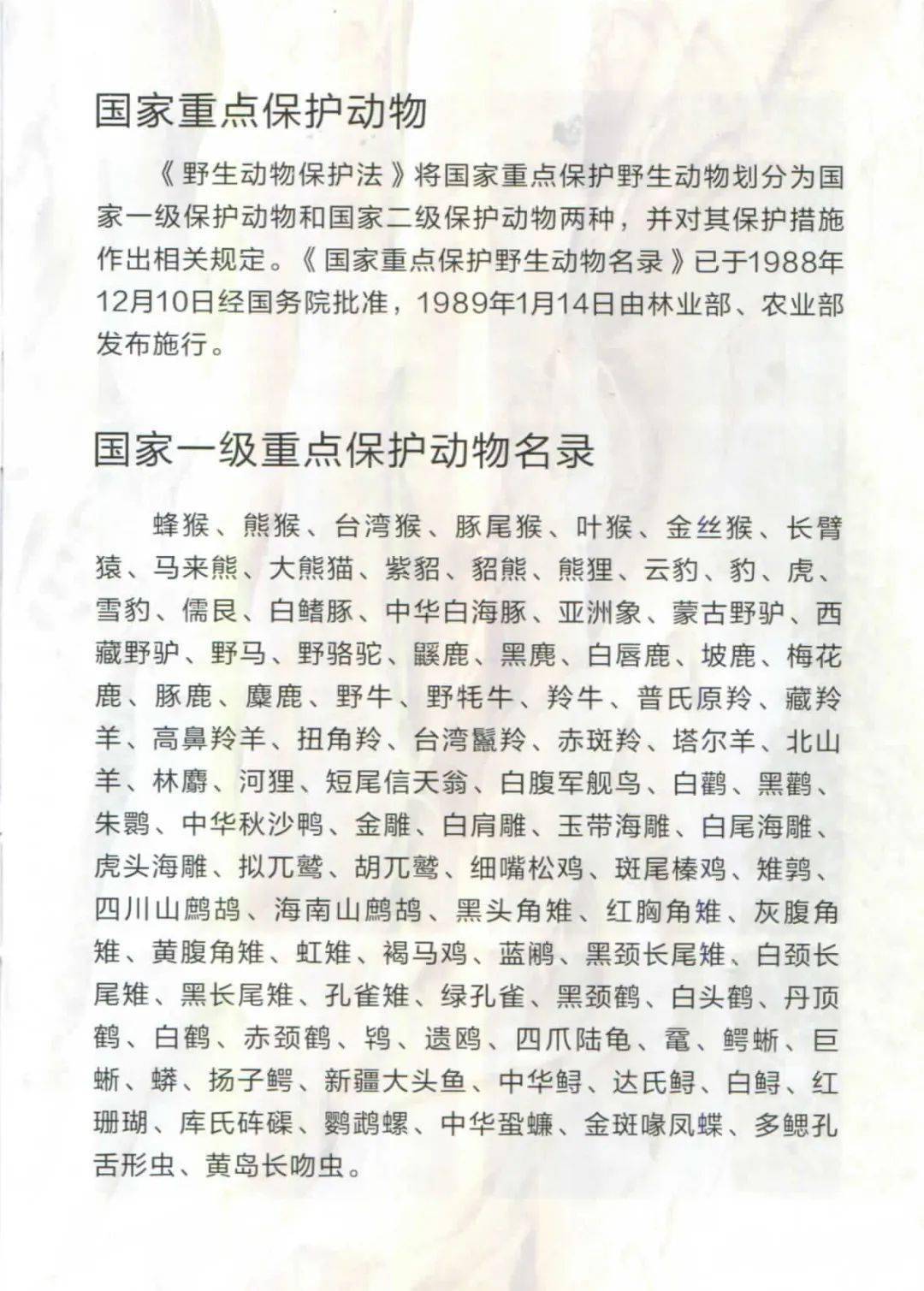 该野生动物保护名录如下所示:为了响应并贯彻落实《决定》中的全面