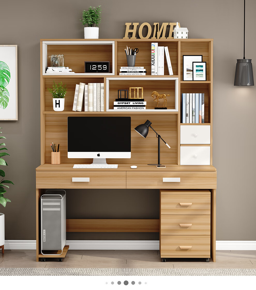 现代简约实木书桌书柜书架一体中式家用台式电脑桌写字桌书房家具