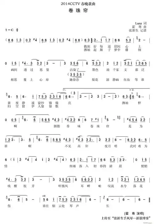 央视马年春晚新歌选 卷珠帘 歌谱简谱网