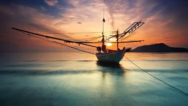 启程-夕阳下的帆船