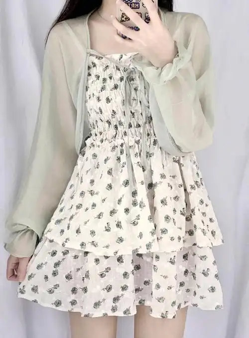 79自带清冷感的碎花吊带裙好仙好温柔