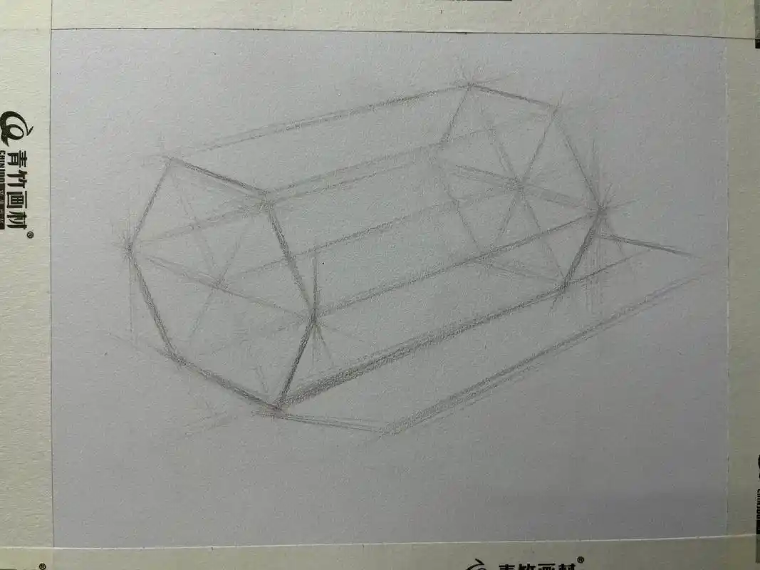 素描几何体六棱柱斜放步骤图.#画画 #原创 #素描 - 抖音