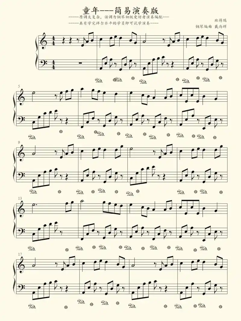 班得瑞《童年》 #琴谱分享 #琴谱 #钢琴谱分享 #钢琴谱 - 抖音