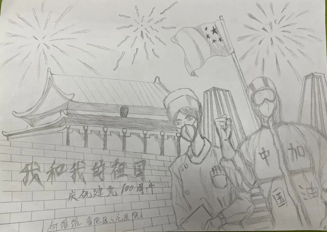 素描手绘建党100周年图标,0橡皮0擦除0修改,献给伟大的祖国母亲