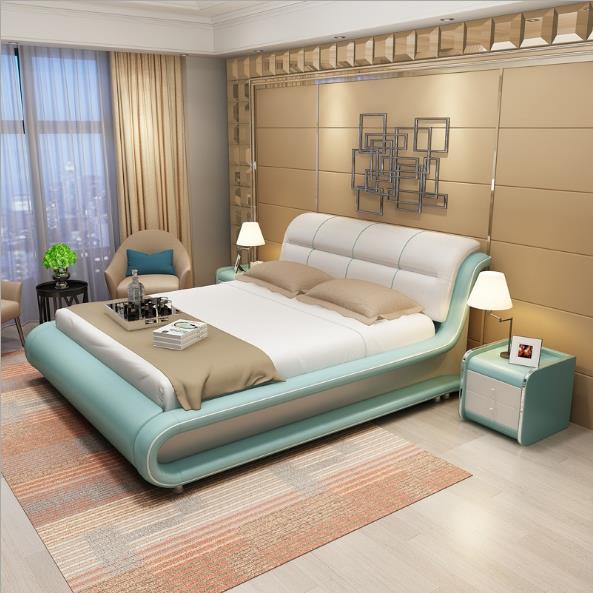 2020年新款现代轻奢双人床主卧皮床18米真皮床软包皮艺床