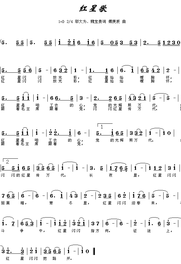 红星闪闪歌谱和歌词 完整版_360问答