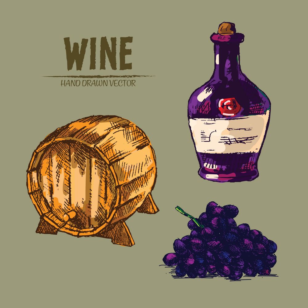 矢量手绘葡萄酒