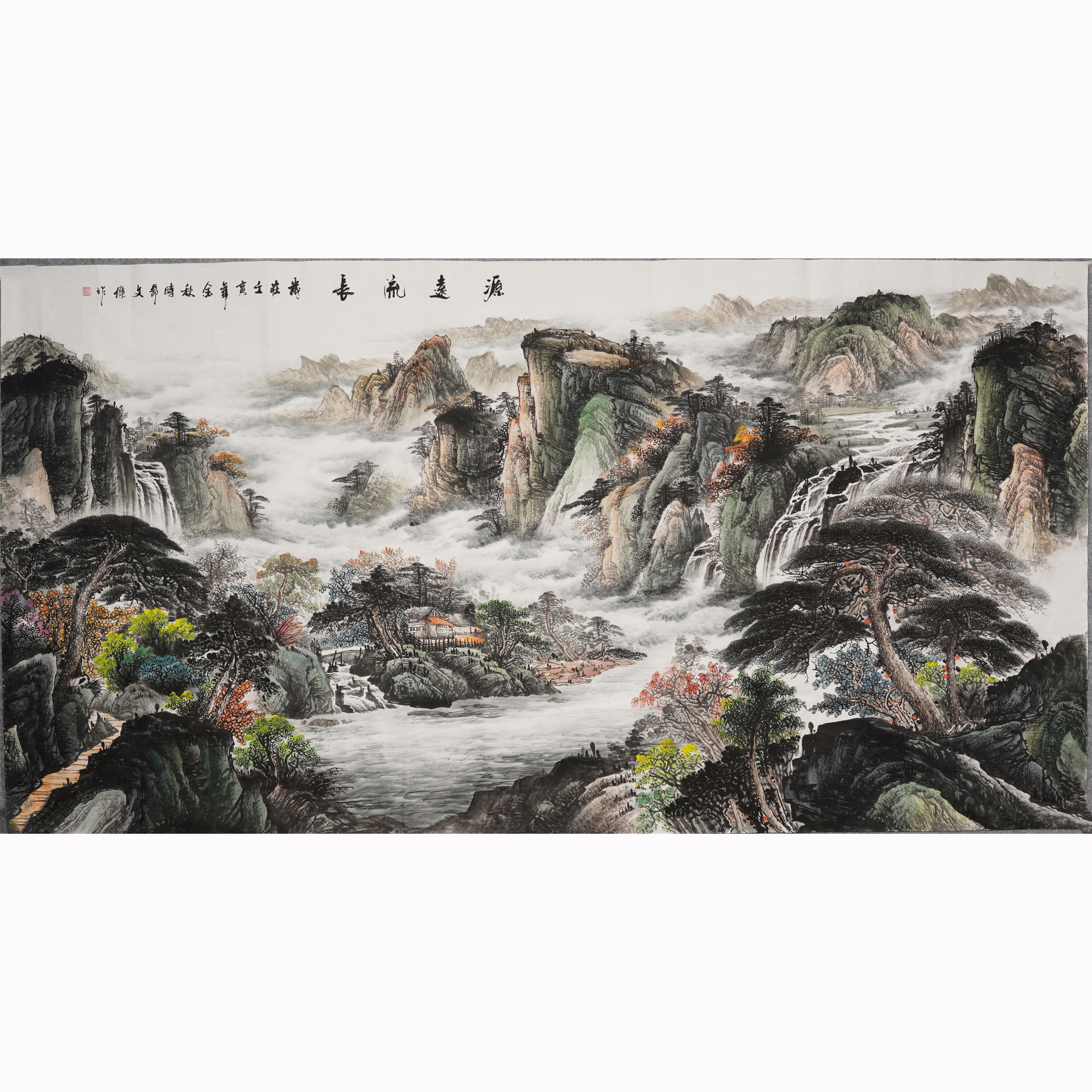 4米 《鸿运当头》 客厅办公室聚宝盆山水画 纳万财聚祥福