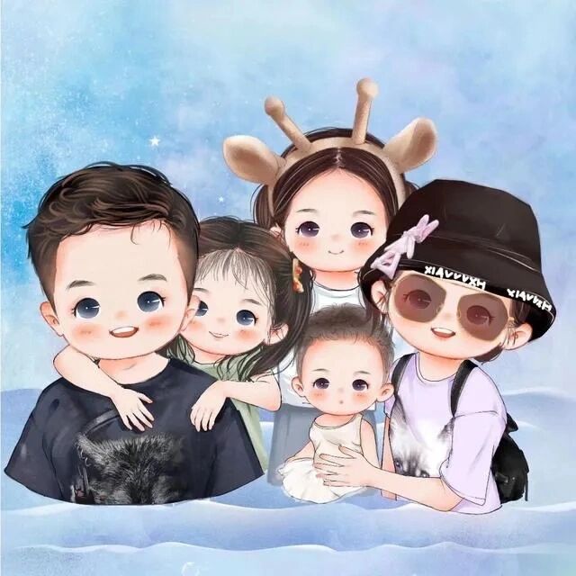 一家五口两女一儿头像~你留言我做图 原作者