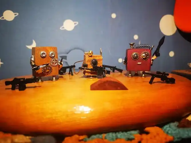 自给 宇宙小魔王守卫者系列蒸汽朋克木质机器人挂件潮玩