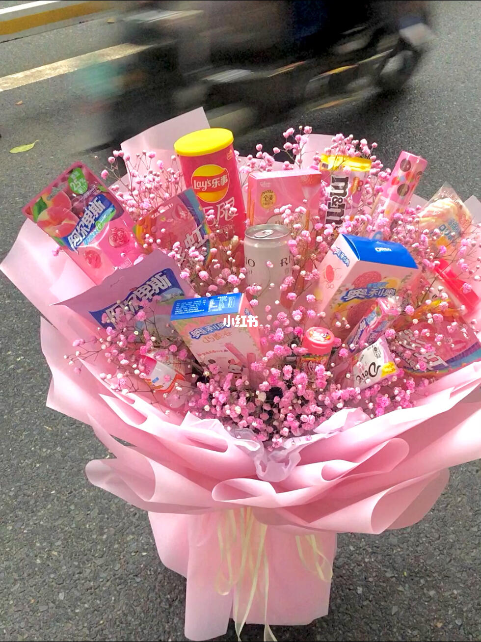 满天星粉色系零食花束没有文案只有零食愿你快乐不止今日