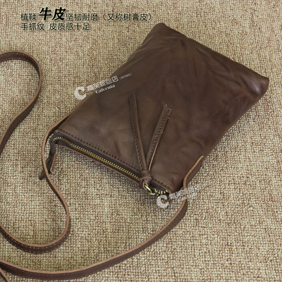 植鞣真牛皮手机包真皮女包竖型小挎包复古放手机散步质感斜挎小包