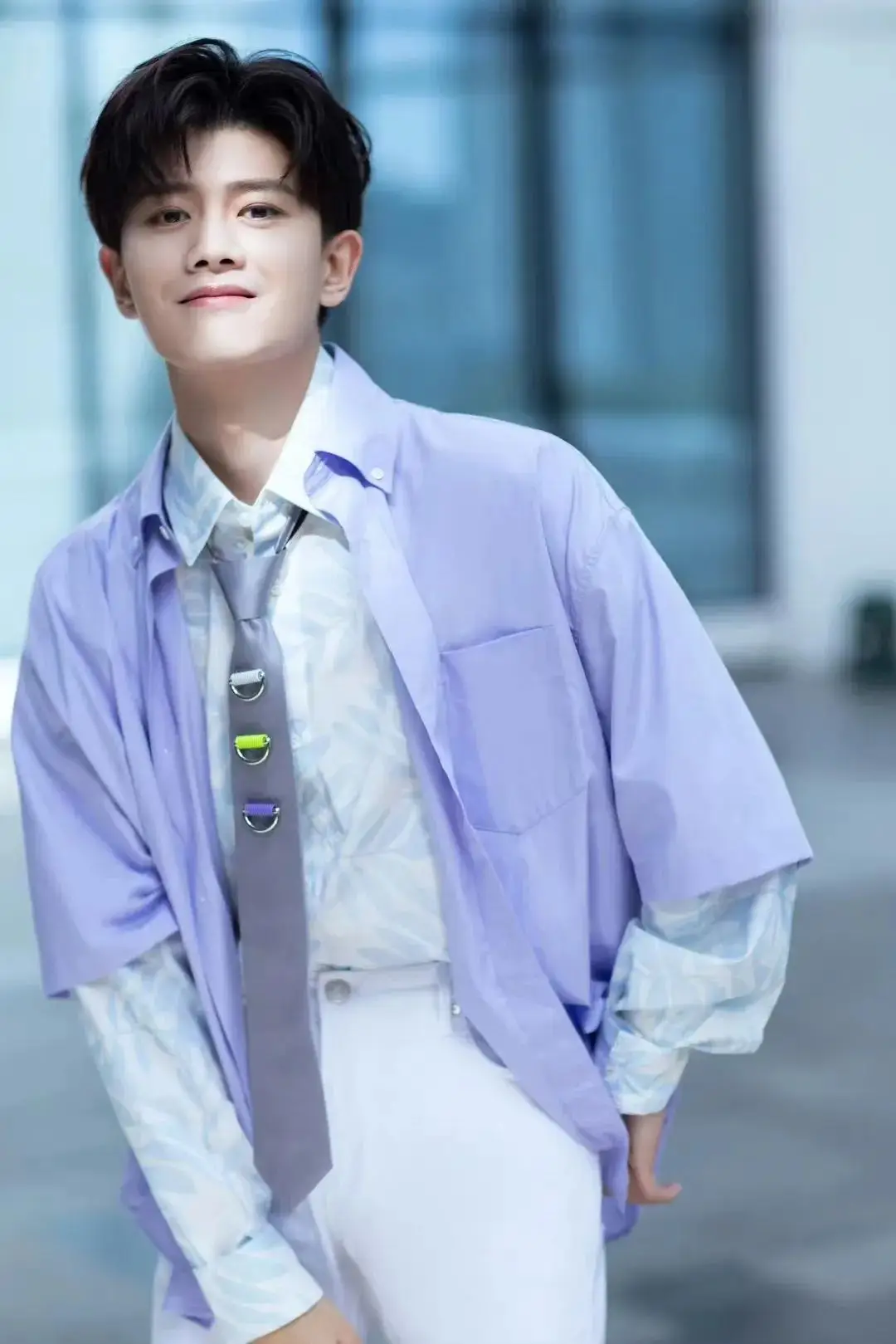 王一博黑色西装搭配蓝白丝巾,好清爽好高级!