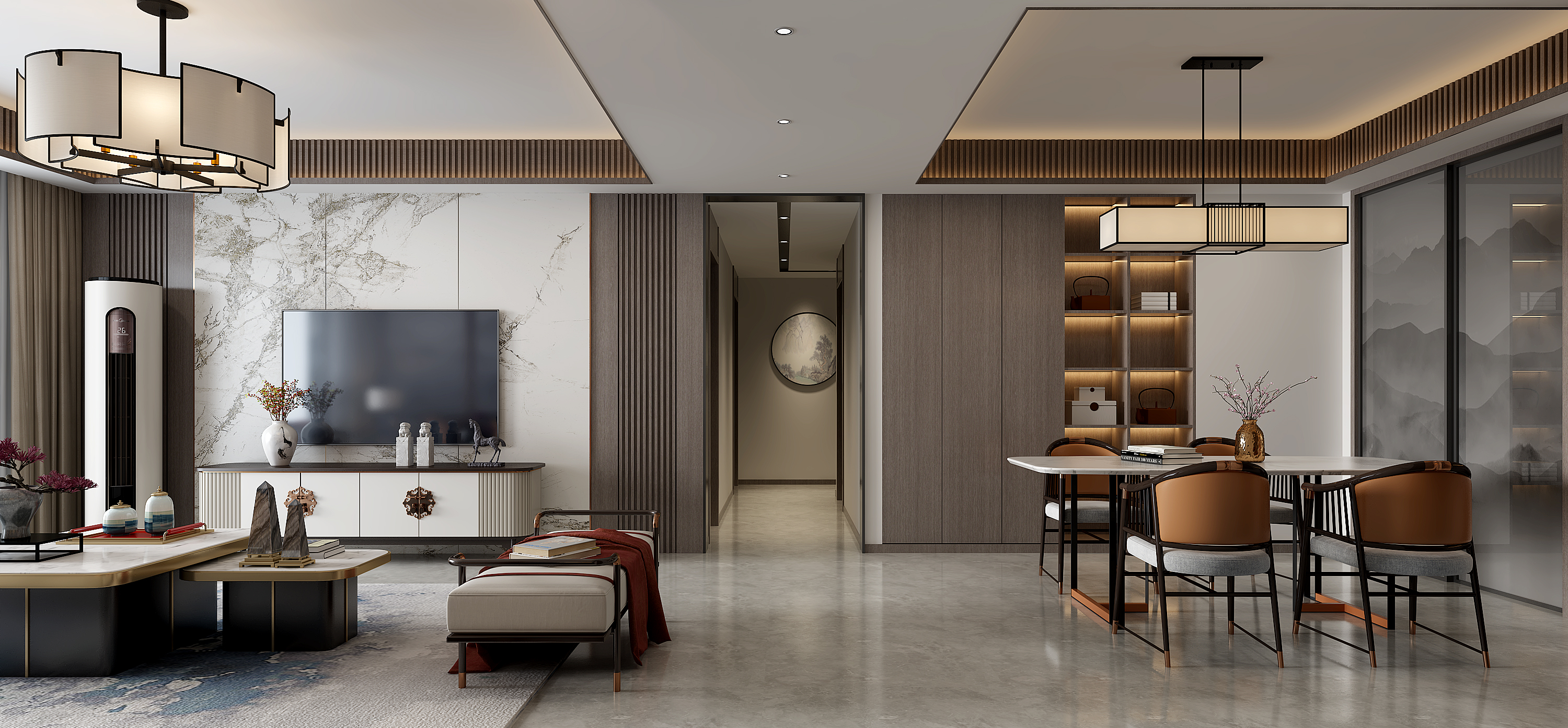 新中式客餐厅-室内设计-拓者设计吧
