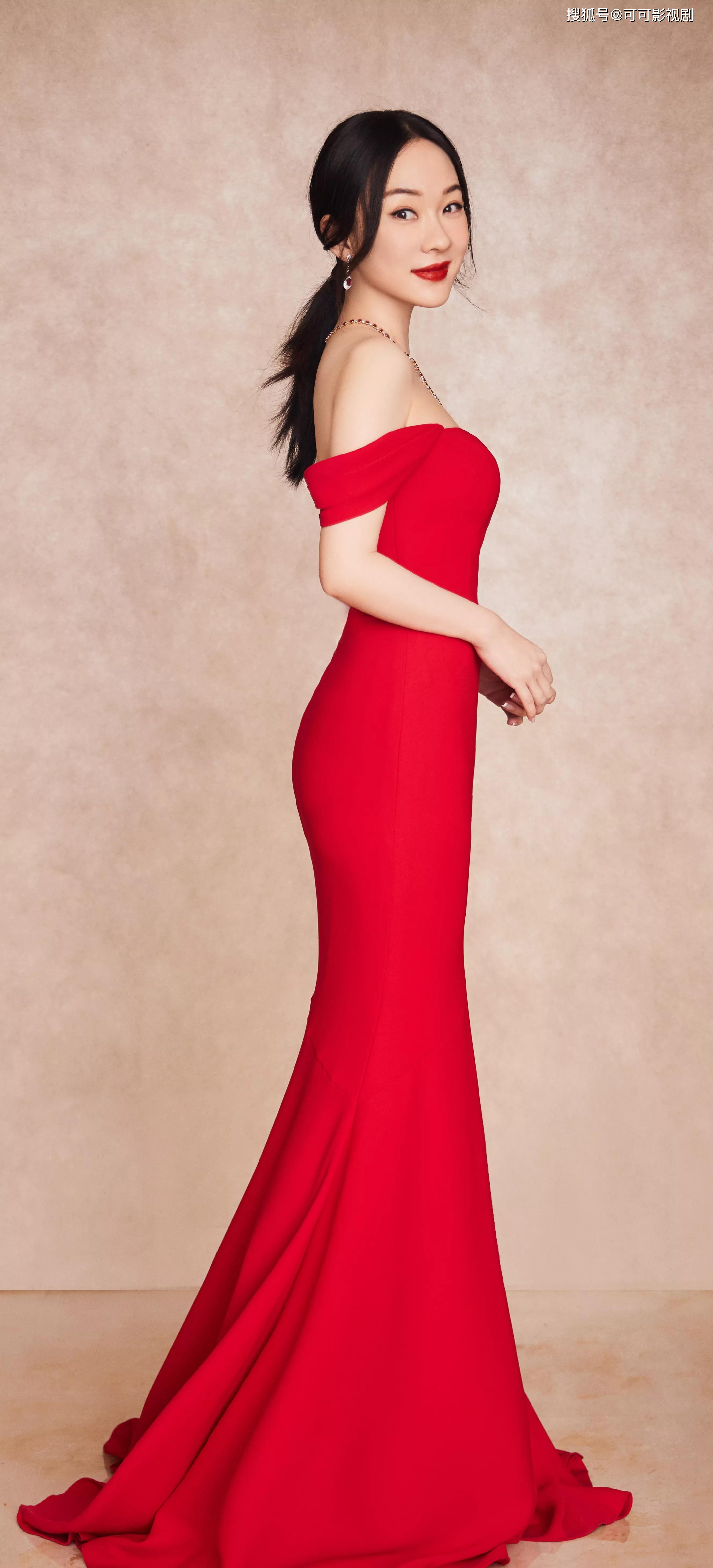 原创霍思燕暗红色高领针织衫搭配亮片背心短裙性感妩媚,金色耳环抢眼