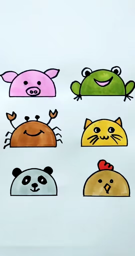 简笔画半圆画小动物,简单呆萌,你也来试试#简笔画#简笔画教程 - 抖音