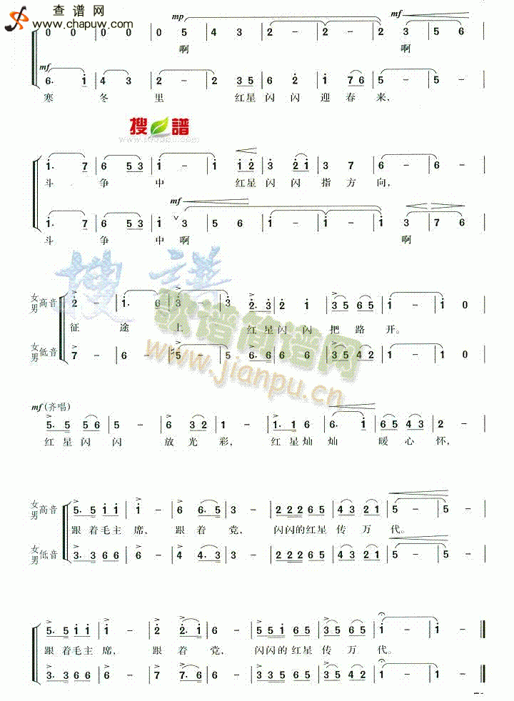 红星闪闪合唱简谱,歌词,学校汇演,急求