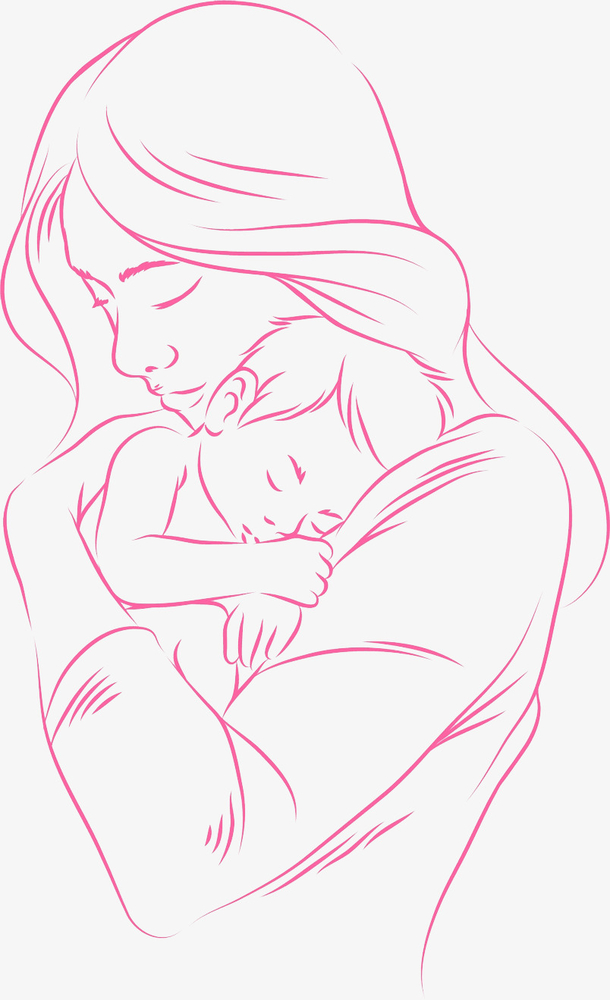 手绘线稿线条妈妈拥抱孩子免抠素材