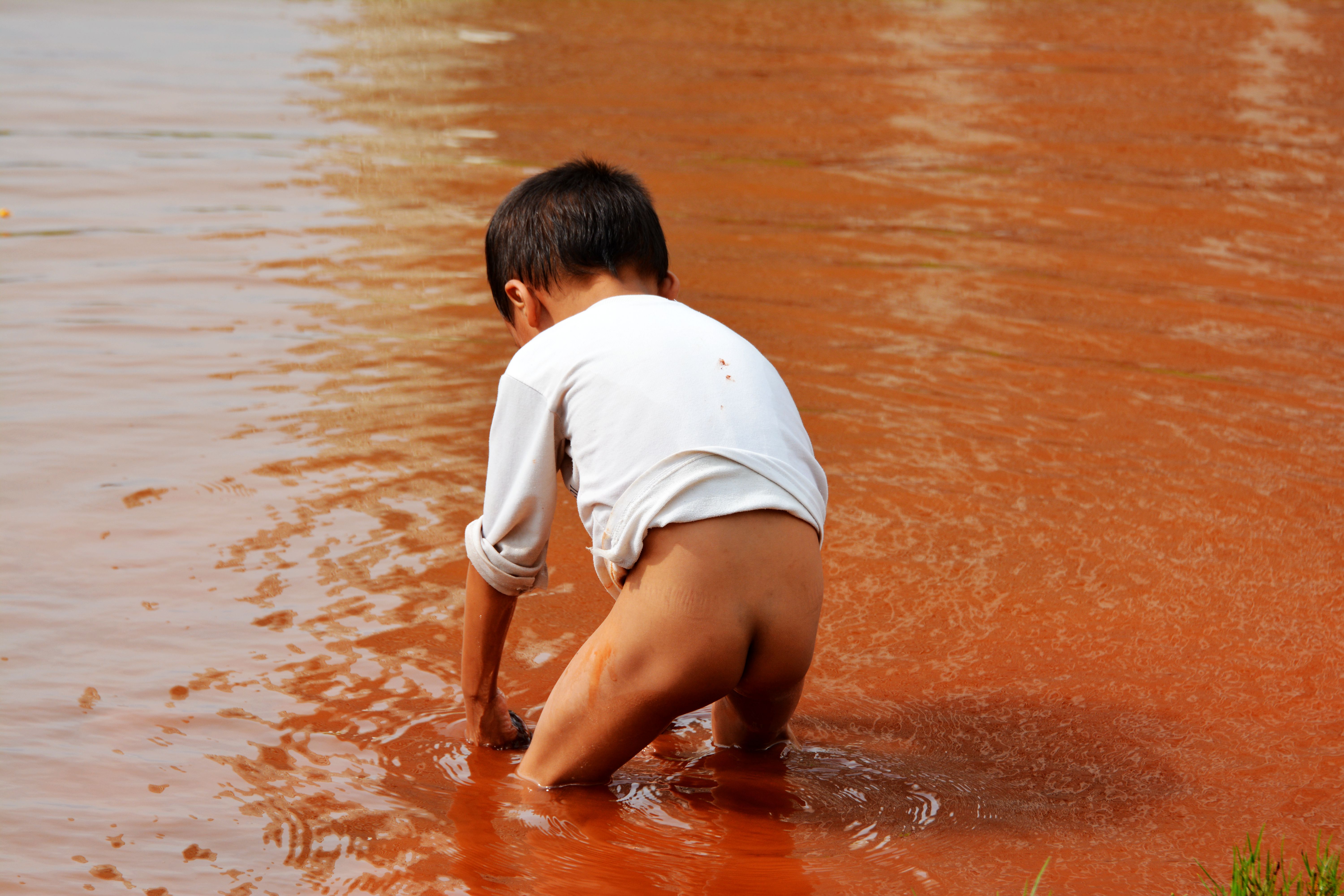 当地小孩自由自在地在池塘游泳戏水,表现了他们的天真无邪!
