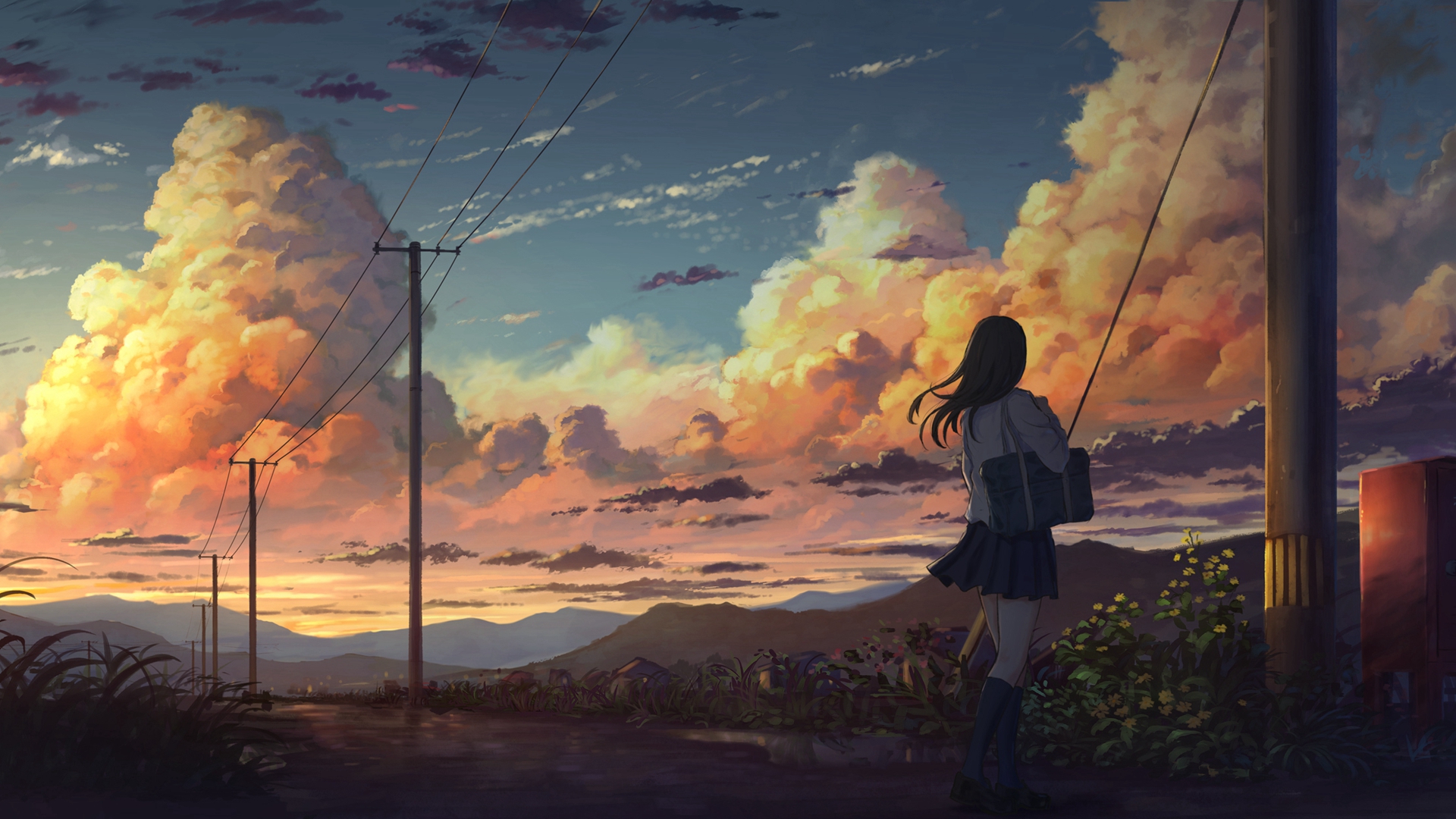 唯美动人二次元风景插画桌面壁纸高清大图预览1920x1080_卡通动漫下载
