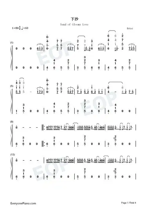 下沙_歌谱简谱_哆来咪123曲谱网