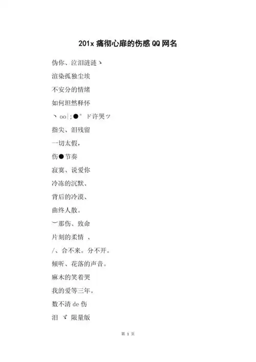 201x痛彻心扉的伤感qq网名