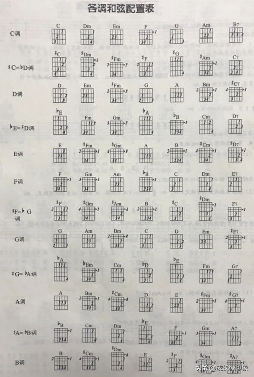 生活知识科普大全:吉他和弦指法图吉他各调的和弦推算方法终极版与