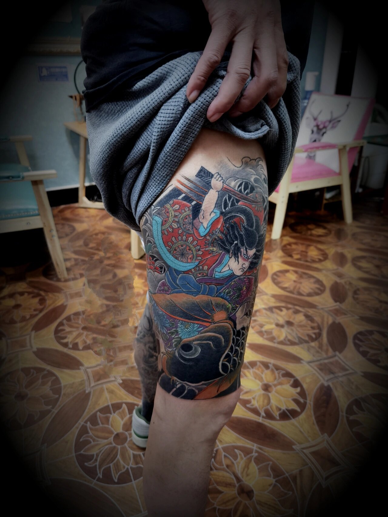 老传统包大腿 鬼若丸纹身