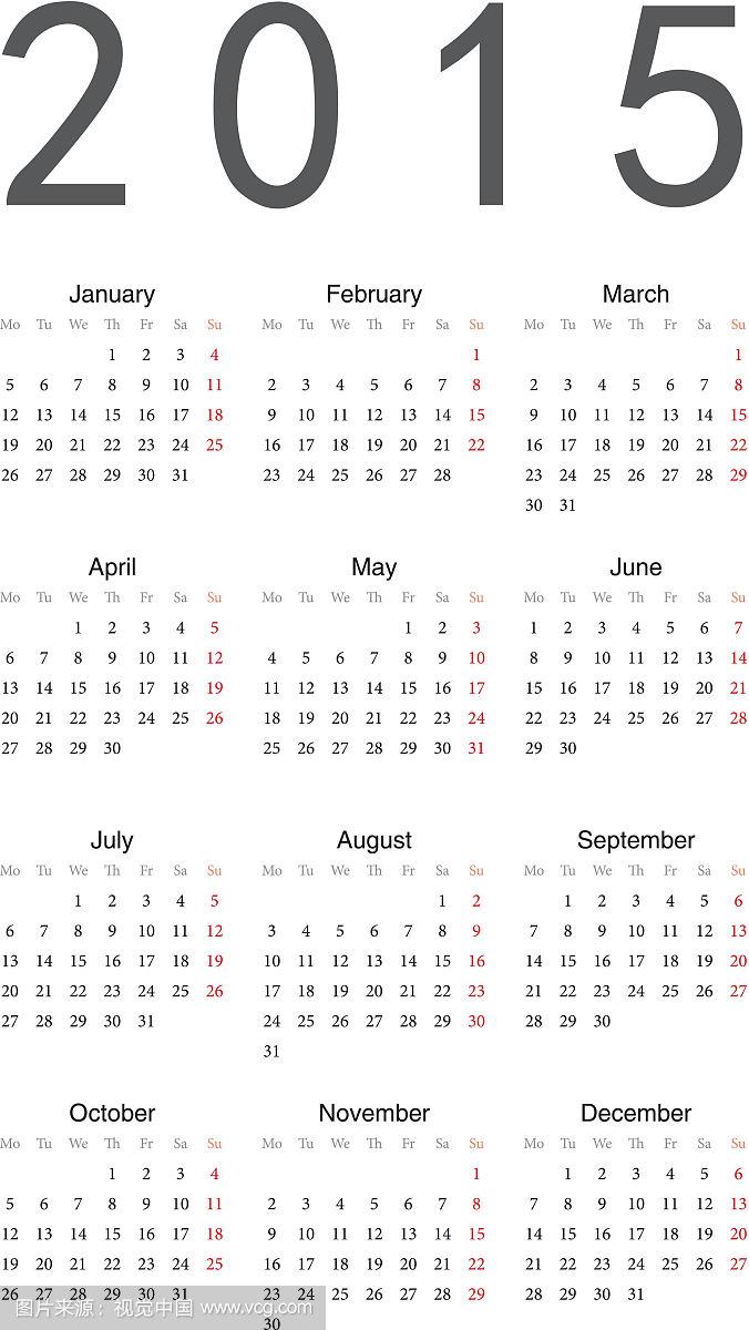 2015年日历