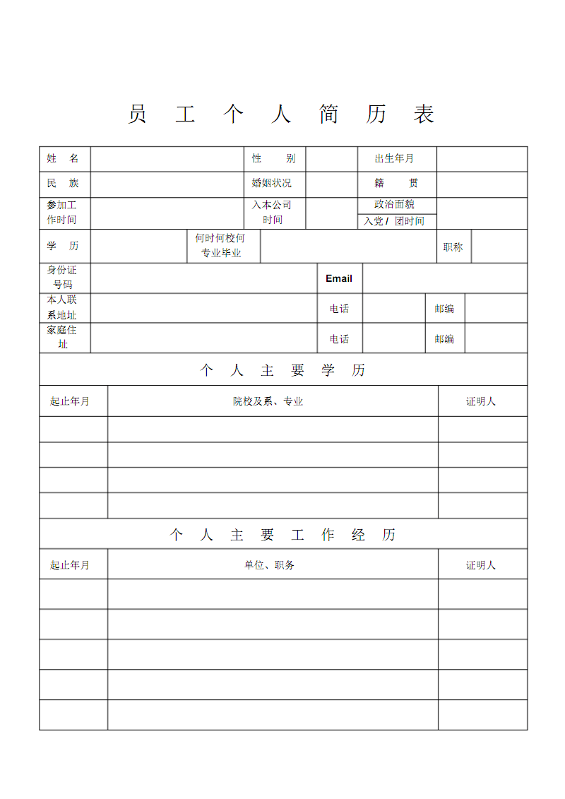 个人简历模板下载_个人(求职)简历空白表格解析.doc