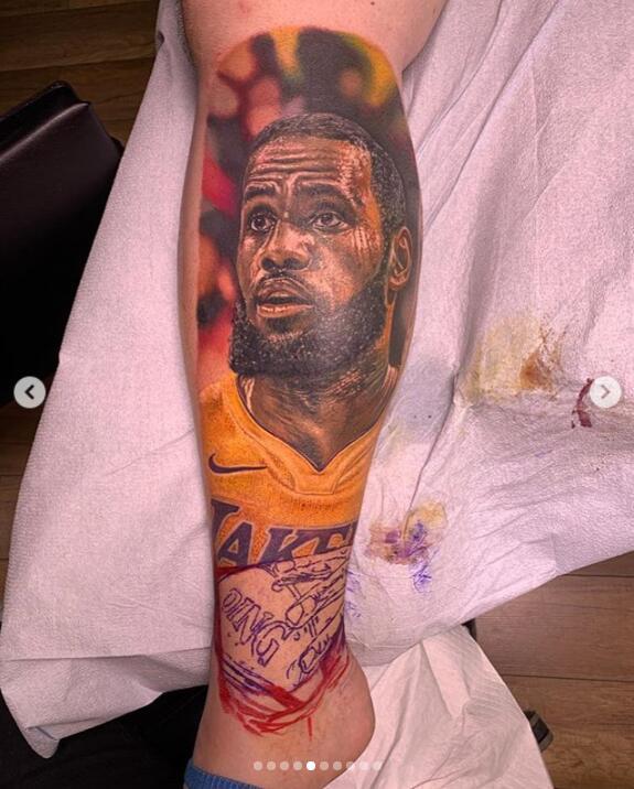 15个小时完成的詹姆斯湖人纹身!连laker都丝毫毕现