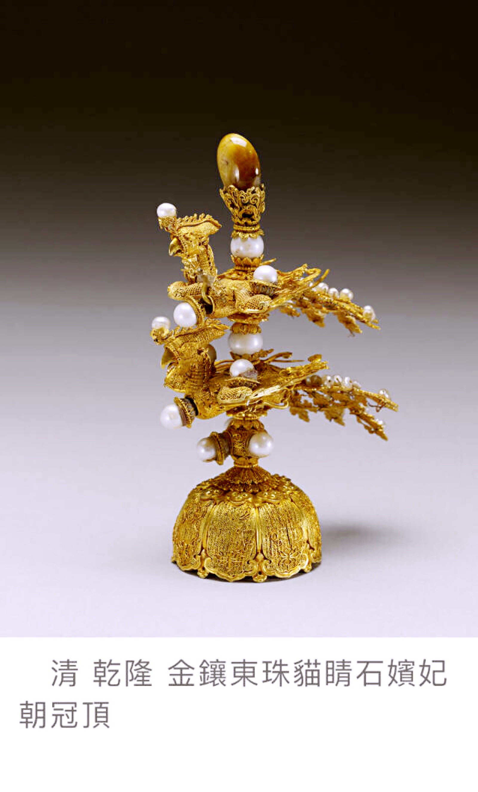 goldcapcrownwithgeminlayedfromqing清代嵌宝石纯金帽冠