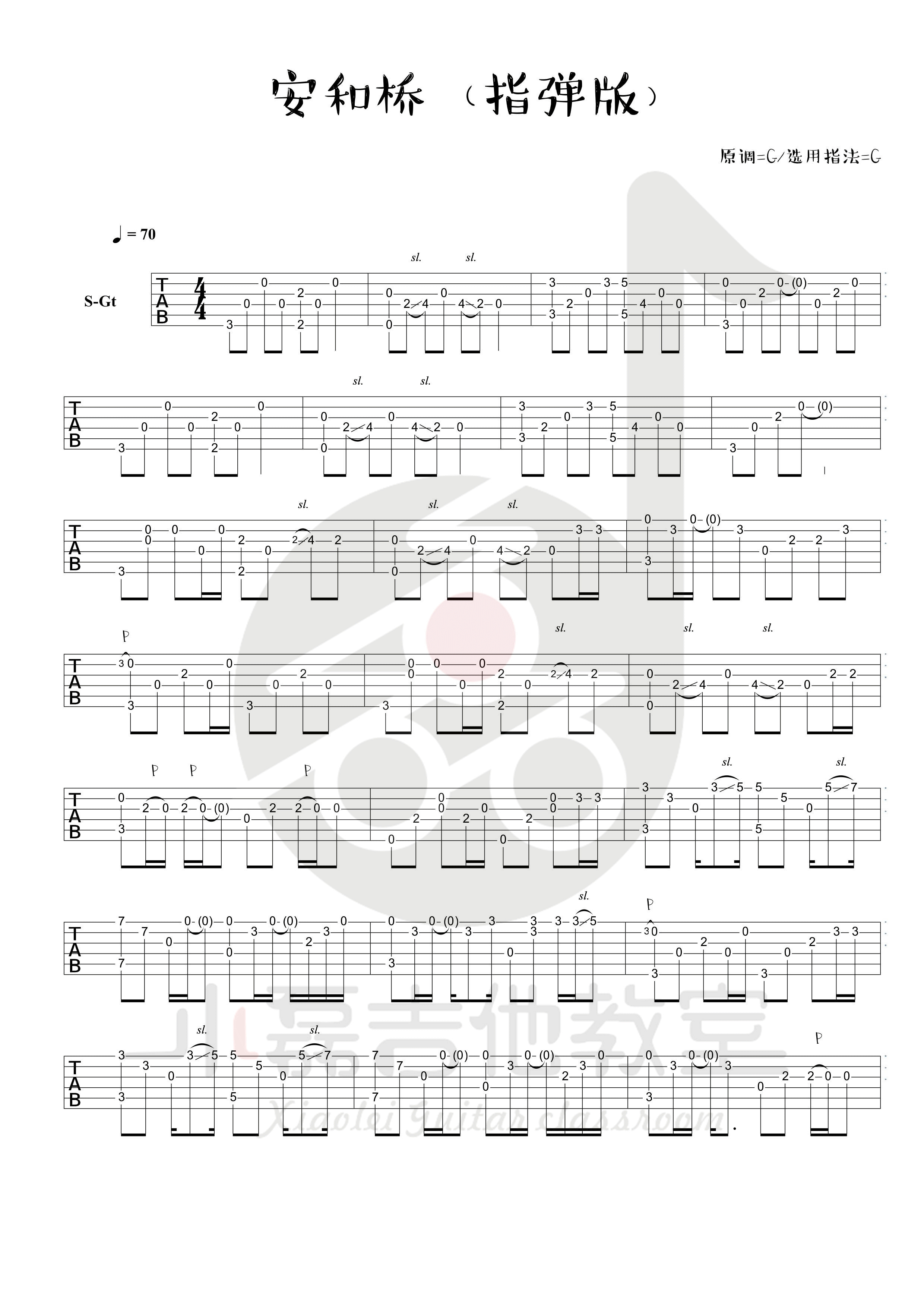安和桥指弹谱宋冬野安河桥吉他独奏谱指弹教学视频