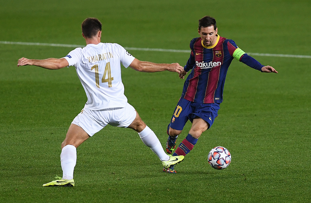 梅西盘带过人.(图源:视觉中国)