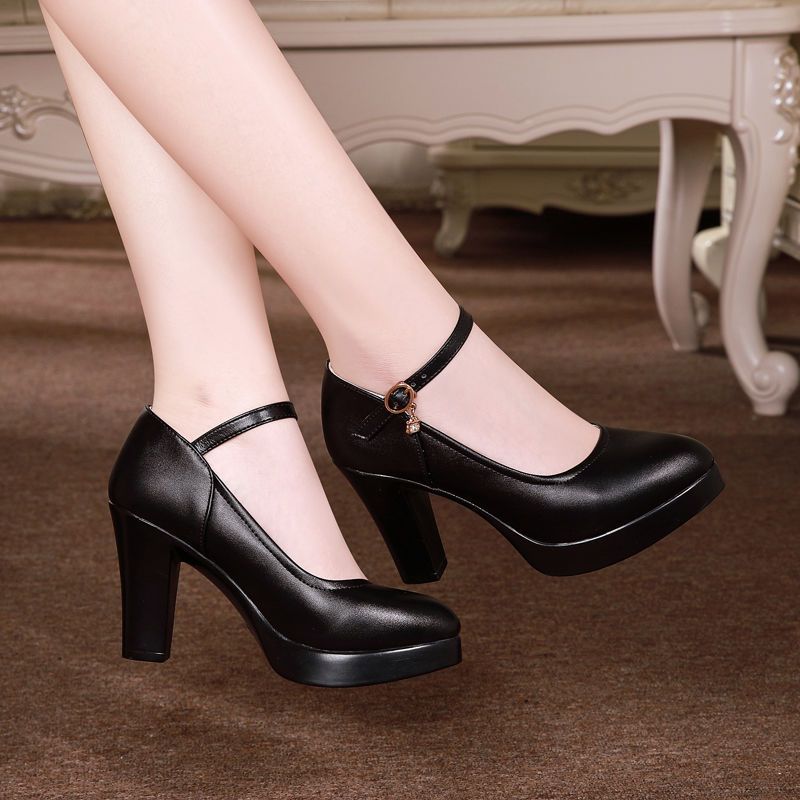 高跟防水台女鞋旗袍黑色模特单鞋粗跟软皮大码职业工作鞋走秀鞋女黑色